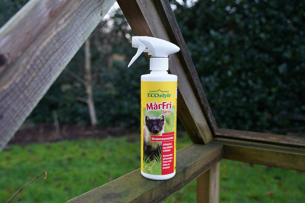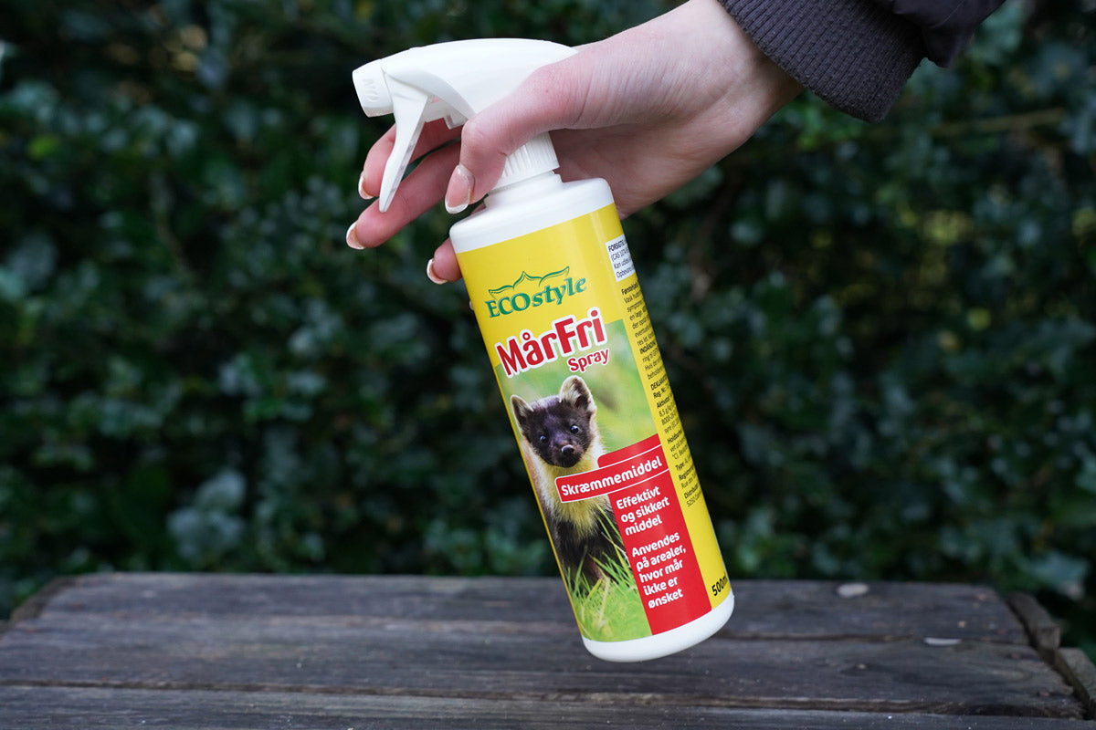 I stedet for at gå i gang med omfattende indgreb eller tekniske løsninger, kan MårFri Spray være den nemme løsning, så du undgår husmår i dit hjem eller skræmmer dem væk, hvis de allerede er flyttet ind.